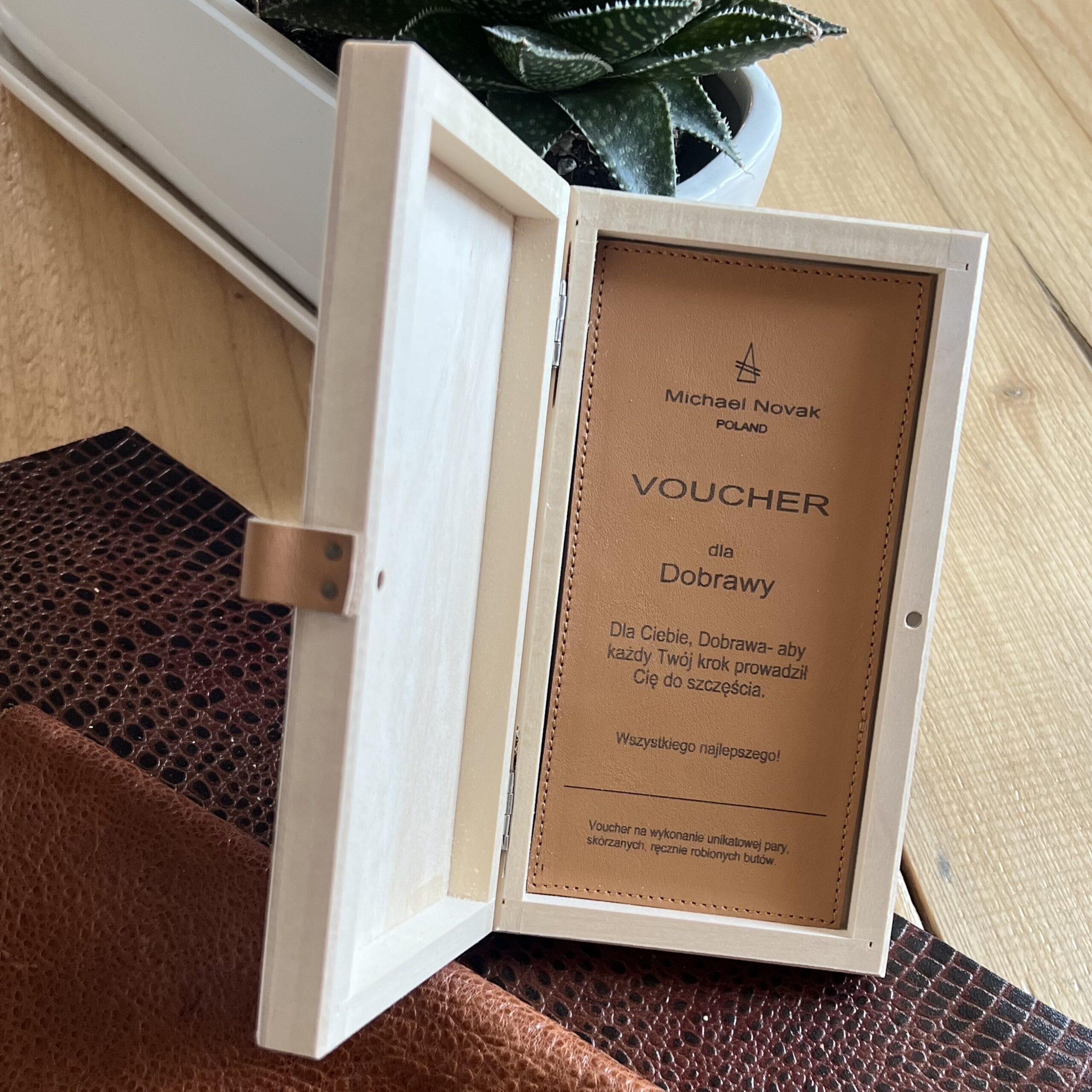 Voucher na wykonanie unikatowej pary butów wraz z wizytą u mnie w pracowni w celu omówienia szczegółów i zdjęcia pomiarów stóp, przeze mnie.